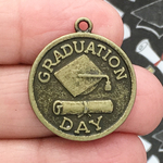 Gold Graduation Charms Wholesale with Graduation Cap and Diploma in Pewter .