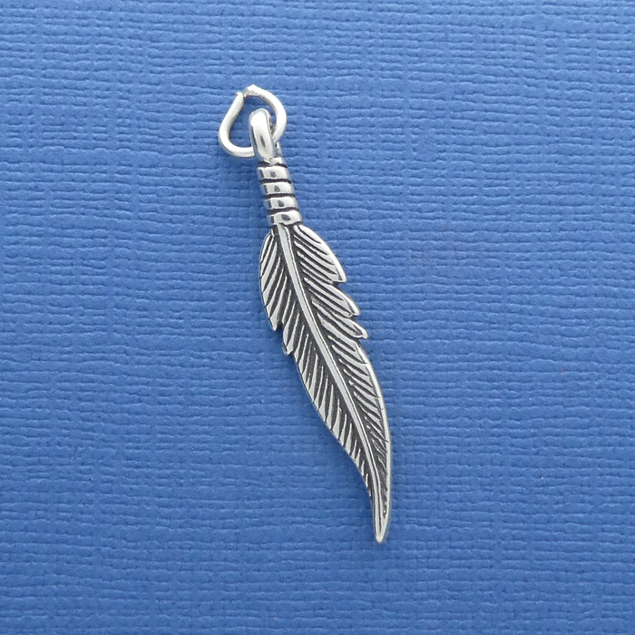 This Feather Charm Sterling Silver Medium is a beautiful and timeless piece of jewelry for those looking for a special accessory. To use this item, simply thread your choice of necklace through the included jump ring of the charm and then clasp your necklace closed for a stunning and unique look. For a more customized and unique look consider pairing this charm with other charms or pendants on the same chain. You can also add this charm to a charm bracelet or attach it to a keychain. No matter what style you are going for, this charm is sure to be a stand-out piece in your jewelry collection. Height 33-mm, Width 7-mm, Depth 2-mm, All sizes are rounded to the nearest millimeter.