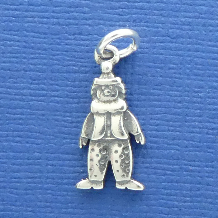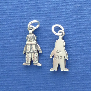This Sterling Silver Clown Charm is the perfect way to add a touch of fun and whimsy to any outfit. Whether you're dressing up for a carnival-themed party or just want to add a playful accessory to your look, this charm is sure to put a smile on your face. Simply clip it onto your favorite bracelet or necklace and you're good to go! This charm is perfect for anyone who loves clowns and funny jokes - it's sure to make everyone smile. Plus, the sterling silver makes it a high-quality piece that will last long. So why not add this charming charm to your jewelry collection today? Height 17-mm, Width 8-mm, Depth 3-mm, All sizes are rounded to the nearest millimeter.