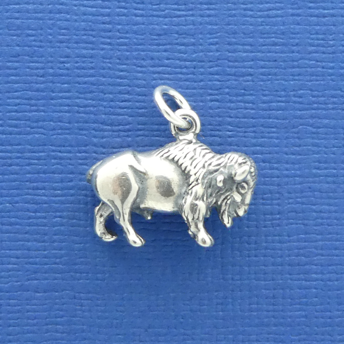 This Sterling Silver Buffalo Charm is a beautiful and unique way to show your love for the American Buffalo. It's perfect for adding to any bracelet or necklace chain as a daily reminder of your affection for the buffalo. Whether you're looking for a thoughtful gift for the Buffalo lover in your life or simply want to add some personality to your own jewelry collection, this charming pendant is sure to please. Height 13-mm, Width 16-mm, Depth 5-mm, All sizes are rounded to the nearest millimeter.