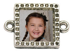 Square Photo Charm in Antique Silver Pewter Picture Charm with Double Bail. The Small Picture Frame Charm has Dimple Accents on the Edge. Height 19-mm, Width 27-mm, Depth 3-mm. This Pewter Charm Does Not Include a Jump Ring or Split Ring. Use this Photo Charm in a Bracelet Horizontally. Or Use as a Vertically Picture Charm and add an Accent Charm or Crystals from the Bottom Bail.