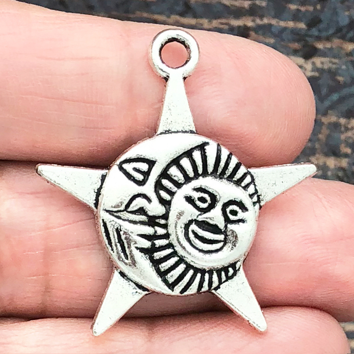 Crescent Moon Charm with Angel in Antique Silver Pewter