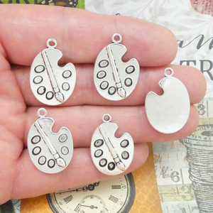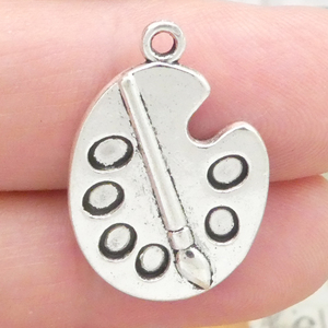 Small Palette with Brushs Art Charm Pendant in Antique Silver Pewter