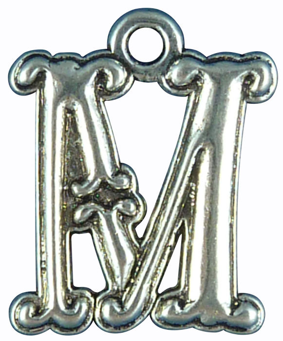 Initial Charm Antique Silver Pewter M Letter Charm. The M Initial Charm is the Perfect Addition to any Alphabet Charm Bracelet. Height 26-mm, Width 20-mm, Depth 2-mm. This Pewter Charm Does Not Include a Jump Ring or Split Ring.