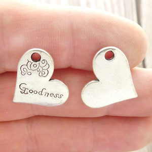 Height 18-mm, Width 21-mm, Depth 2-mm. This Pewter Charm Does Not Include a Jump Ring or Split Ring. This Goodness Charm makes a great addition to any Affirmation Charms Bracelet.