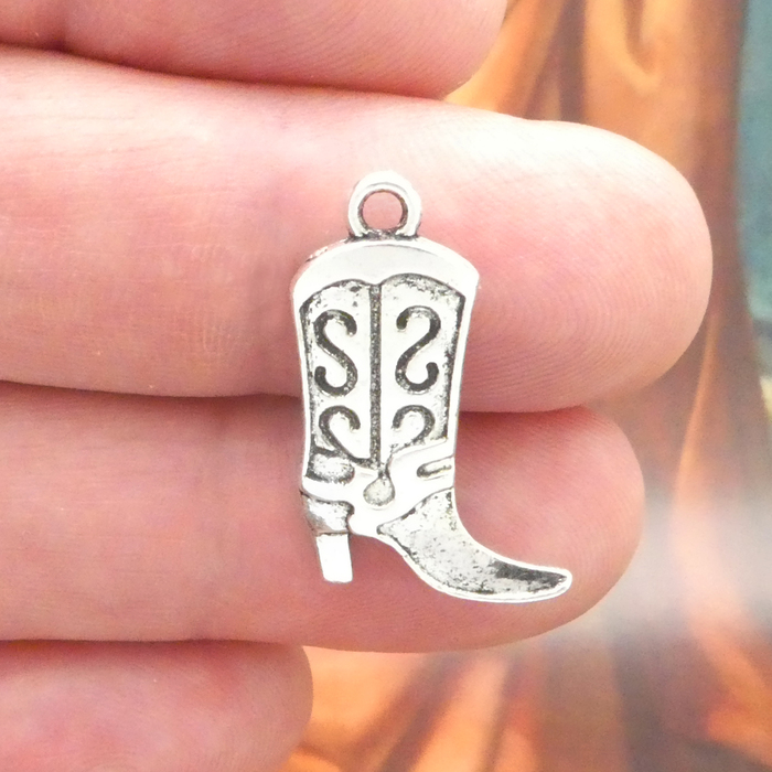 Looking for a unique gift for the cowboy or cowgirl in your life? Check out our collection of cowboy boot charms! Made from silver pewter, these charms are a great way to show your love for all things cowboy. Whether you're looking for a charm to add to your own boots or one to give as a gift, we've got you covered. Height 25-mm, Width 16-mm, Depth 3-mm. This Pewter Charm Does Not Include a Jump Ring or Split Ring. The Boot Charm makes a Great addition to any Cowboy Charm Bracelet.