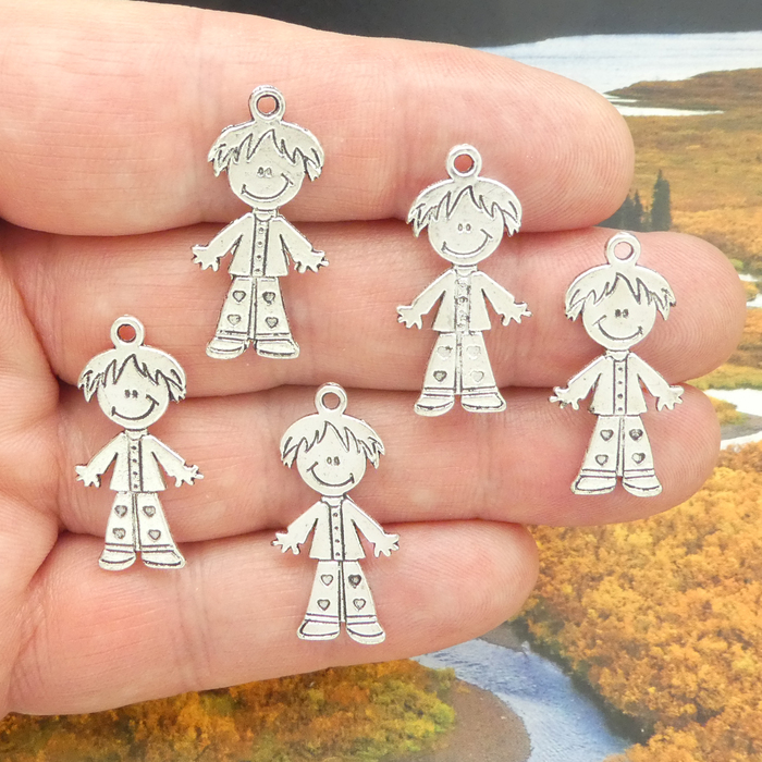 Boy Charms Wholesale in Silver Pewter with Heart Accents