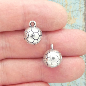 Looking for a way to add some extra flair to your soccer team spirit? Check out these wholesale soccer ball charms in antique silver pewter! With a medium size, these charms are perfect for adding a bit of personality to your team spirit without being too over-the-top. Whether you're looking to show off your team spirit or just want to make your uniform stand out from the rest, these charms are a great way to do it. Height 14-mm, Width 11-mm, Depth 11-mm. This Pewter Charm Does Not Include a Jump Ring or Split Ring.