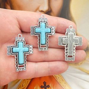 This beautiful southwest silver cross pendant is the perfect way to add a touch of southwestern flair to any outfit! The intricate pewter design is accented with a turquoise stone in the center, making it a truly unique piece. Whether you wear it with jeans and a t-shirt or a pretty dress, this pendant is sure to add a touch of personality to your style. A jewelry piece with a turquoise stone is very fashionable and popular. Turquoise jewelry is often worn to bring good luck and happiness. It also has deep religious significance in many cultures. For instance, the ancient Egyptians adorned themselves with turquoise jewelry to symbolize their royal status. The word turquoise comes from an old French word tourke, or tower. This refers to the stone's perceived beauty and its place of prominence in a person's jewelry collection. Height 41-mm, Width 29-mm, Depth 6-mm.