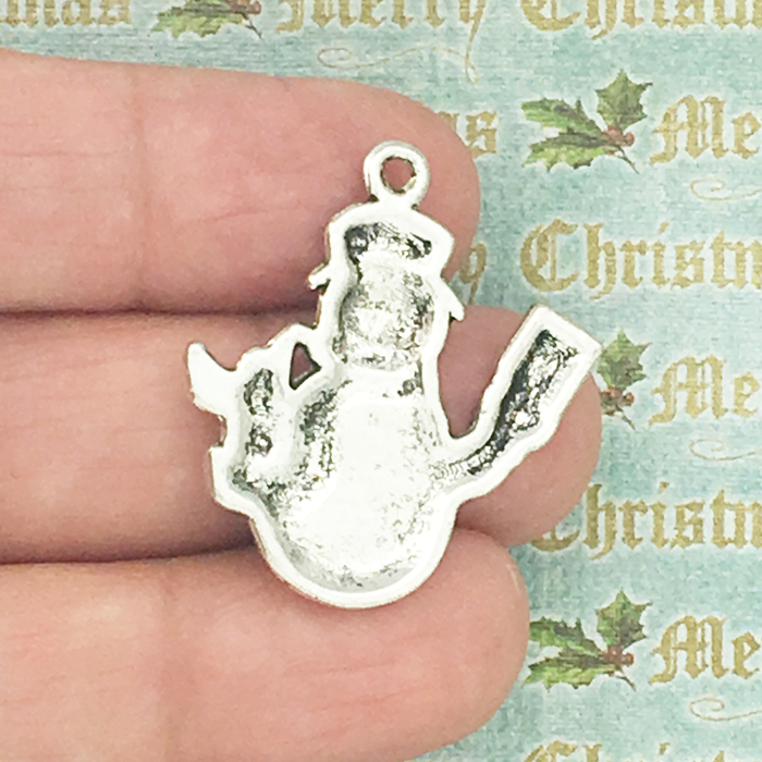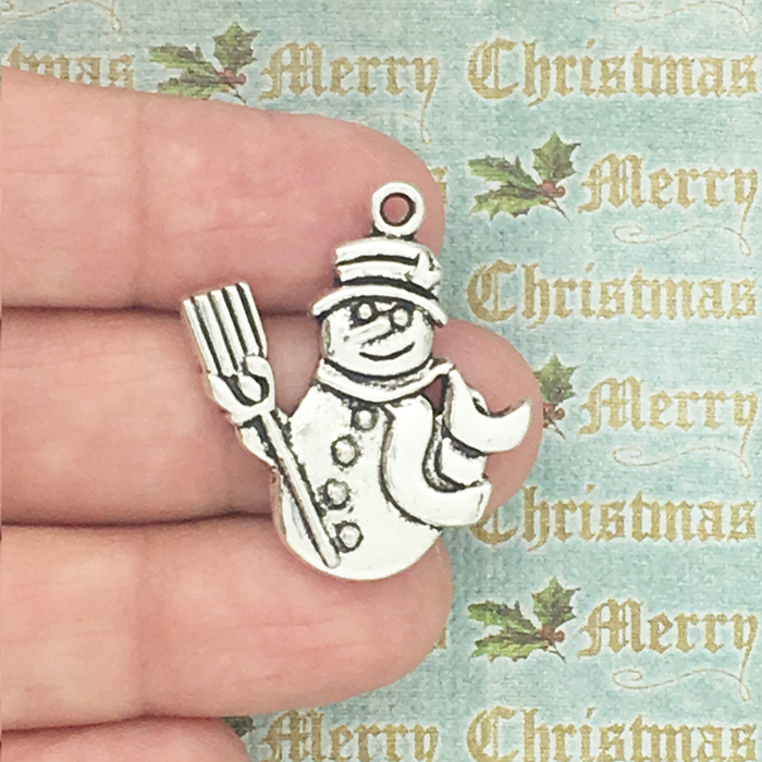 A creative way to use a Silver Snowman Charm for Bracelet in Pewter with Shovel is to transform it into a whimsical winter bookmark! Simply attach the charm to a tassel or ribbon, and use it to mark your page in a book. Not only will it add a touch of holiday cheer to your reading experience, but it also serves as a unique conversation starter. Plus, you'll never lose your place while enjoying a cozy night in with a good book! Height 29-mm, Width 26-mm, Depth 3-mm. This Pewter Charm Does Not Include a Jump Ring or Split ring.