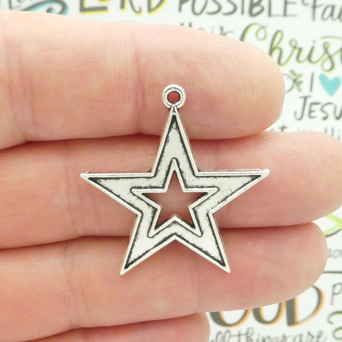 Cutout Star Charms Wholesale in Antique Silver Pewter