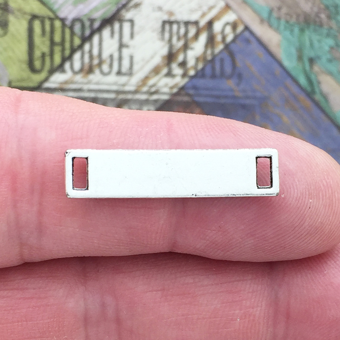 Embrace tranquility with our Peace Connector Charms, meticulously crafted from lustrous silver pewter. Each charm features the iconic peace symbol, radiating a message of harmony and unity. The sleek, minimalist design of the peace sign is set against a backdrop of beautifully finished pewter, giving it an elegant, vintage appeal. Designed to connect, these charms are perfect for adding a touch of peace to your jewelry collection. Use them to link chains, and bracelets. Their versatile connector style allows for creative expression in your personal style or to send a message of peace wherever you go. Whether you're piecing together a statement piece of jewelry or looking for a symbolic gift that speaks volumes without words, these Peace Connector Charms in Silver Pewter are a timeless choice for those who believe in the power of peace. Height 27-mm, Width 5-mm, Depth 1-mm. This Pewter Charm Does Not Include a Jump Ring or Split Ring.