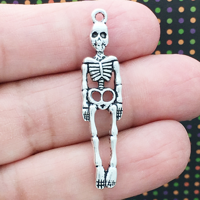 Introducing the Skeleton Halloween Charm in Antique Silver Pewter – the perfect accessory to add a touch of spooky charm to your Halloween celebrations! This exquisitely crafted charm features a detailed skeleton design, brought to life in stunning antique silver pewter. This versatile charm is perfect for adding a little Halloween flair to your jewelry collection. Attach it to a bracelet, necklace, or even a keyring to show off your love for the spooky season. The intricate detailing and antique silver pewter finish make this charm a standout piece that is sure to be a conversation starter. Made from high-quality pewter, this Skeleton Halloween Charm is built to last and will be a cherished addition to your collection for years to come. So why wait? Add a touch of spooky elegance to your Halloween ensemble with the Skeleton Halloween Charm in Antique Silver Pewter! Height 39-mm, Width 9-mm, Depth 3-mm. This Pewter Charm Does Not Include a Jump Ring or Split ring.