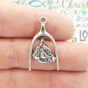 This Small Horse Head Charm Antique Silver Pewter is an ideal accent piece for jewelry and craft creations. To use this item, begin by deciding which type of jewelry you would like to make with the charm. This charm looks beautiful as a necklace pendant or used as an intricate part of a bracelet set. To use the charm on a necklace, you will need a jump ring, which should be the same size as the holes on the charm. Place the jump ring in the hole and use pliers to close the ring. The charm can be strung on any type of chain or cord to complete your necklace piece. If you are using the charm on a bracelet creation, you can attach it the same way. Simply string the charm on the jewelry hardware of your choice, then using the pliers to close the jump ring to secure the charm. This Small Horse Head Charm Antique Silver Pewter is a versatile item and will make any handmade jewelry piece stand out! Height 31-mm, Width 17-mm, Depth 3-mm. This Pewter Charm Does Not Include a Jump Ring or Split Ring.