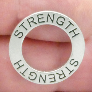 Affirmation Ring Strength Charm in Antique Silver Pewter. Diameter 22-mm, Depth 2-mm. Made in USA Products.
