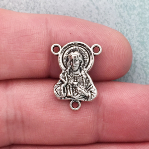 The perfect Catholic gift! The double sided Sacred Heart Rosary Centerpiece in gold pewter is a beautiful addition to any rosary. Height 20-mm, Width 15-mm, Depth 4-mm. This Pewter Charm Does Not Include a Jump Ring or Split Ring.