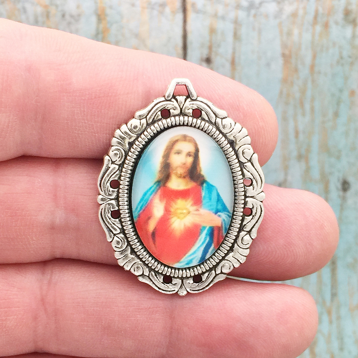 Sacred Heart of Jesus Pendants Wholesale in Silver Pewter