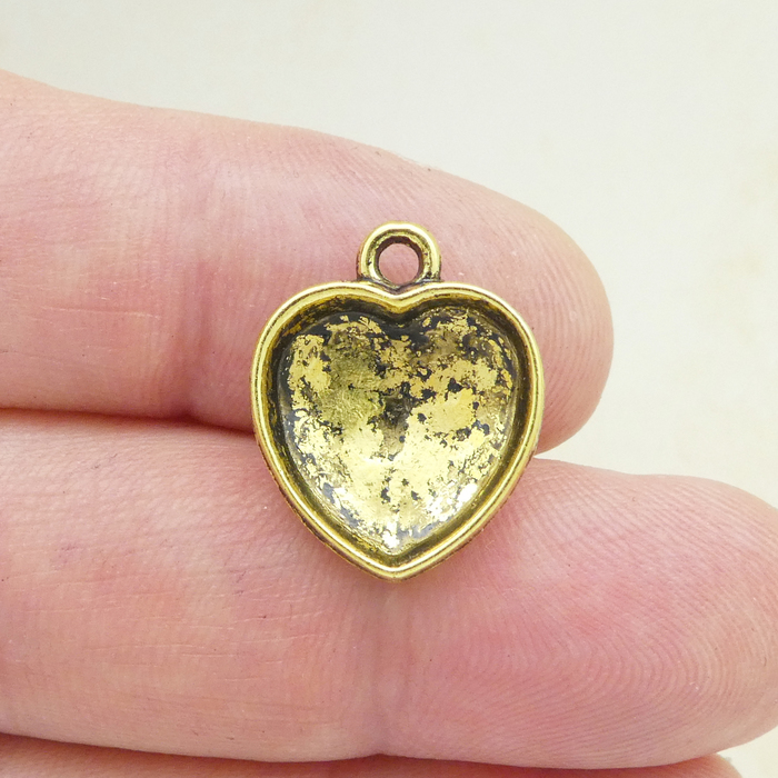 Hammered Heart Charm Antique Gold Pewter. 3D Charm Height 20-mm, Width 17-mm, Depth 5-mm. This Pewter Charm Does Not Include a Jump Ring or Split Ring. Add Ear Wires, it's the Perfect size to Make Heart Jewelry Earrings.