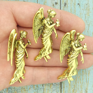 This beautiful Guardian Angel brooch pin is the perfect way to show someone you care. The intricate design and stunning pewter finish make it a truly special gift. Simply attach the pin to their clothing or bag, and they'll be reminded of your thoughtfulness every time they see it. Height 53-mm, Width 24-mm, Depth 13-mm. This Pewter Charm Does Not Include a Jump Ring or Split Ring.