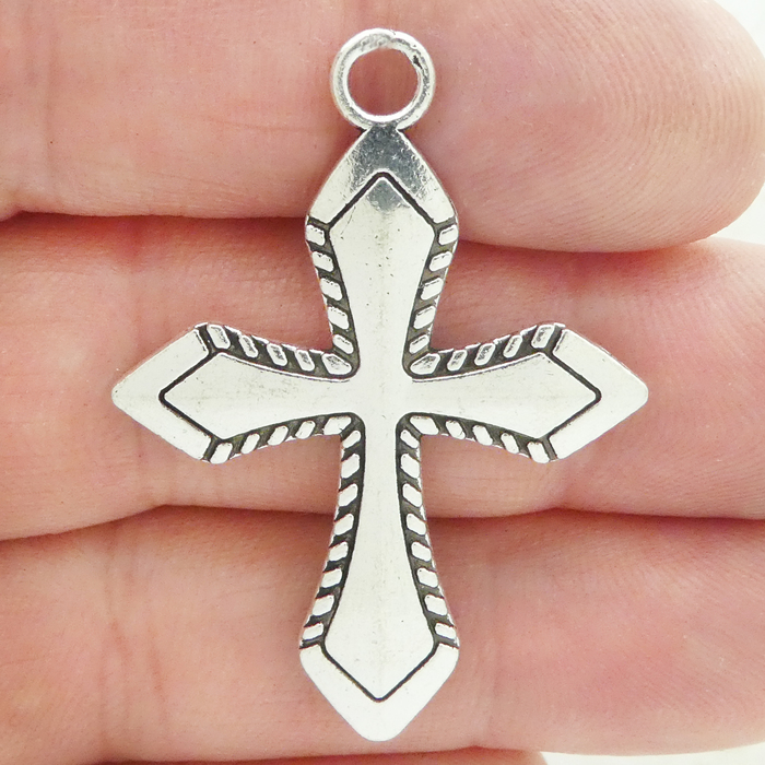 The Modern Silver Cross Pendant Wholesale in Pewter is an elegantly crafted piece that combines contemporary design with traditional significance. Made from high-quality pewter, this pendant boasts an antique silver finish that gives it a timeless appeal while maintaining a modern edge. The cross pendant is designed with clean lines and a sophisticated simplicity, making it versatile for both casual and formal wear. With the same intricate design featured on both sides, ensuring a flawless look from every angle. The pendant's surface is smooth with subtle detailing that enhances its visual depth. This pendant is ideal for wholesale buyers looking for unique, yet accessible pieces to add to their inventory. Its universal appeal makes it a popular choice for gifts, especially for religious occasions like baptisms, confirmations, or as a symbol of faith for daily wear. The pewter used is nickel-free, ensuring it's perfect for those with sensitive skin. With its durable construction, this pendant promises longevity and resistance to tarnish, maintaining its lustrous appearance over time. This piece would be a stunning addition to any jewelry collection, offering both style and substance, and is particularly suitable for those who appreciate jewelry with both aesthetic and spiritual value. Height 44-mm, Width 32- mm, Depth 2-mm. This Pewter Pendant Does Not Include a Jump Ring or Split Ring.