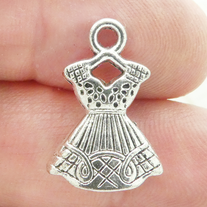 Looking for a way to add some extra flair to your next crafting project? Check out our dress charm! Whether you're looking for something simple and elegant or fun and unique, we've got just the thing to take your project to the next level. You can use our charms to dress up any number of items, from jewelry and clothes to scrapbooks and cards. So get creative and let your imagination run wild! Height 22-mm, Width 15-mm, Depth 6-mm. This Pewter Charm Does Not Include a Jump Ring or Split Ring.