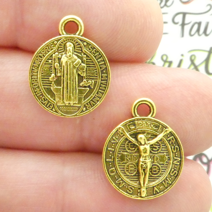 St Benedict Charms Bulk in Antique Gold Pewter Small