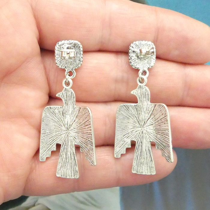 Thunderbird Earrings in Antique Silver Pewter with Turquoise