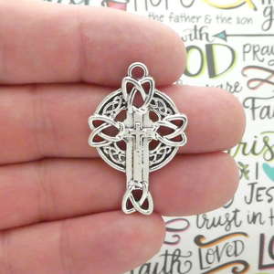 Crafted with an intricate design, this Celtic Cross Charm in Silver Pewter combines traditional symbolism with modern craftsmanship. The charm features the iconic Celtic Cross, known for its circular center which symbolizes eternity, with the cross representing faith. The detailed twisted knot design throughout the cross adds a touch of elegance and complexity, highlighting the rich heritage of Celtic art. Made from high-quality, lead-free pewter. This charm is perfect for those who appreciate spiritual or religious symbolism, or anyone looking to express their connection to Irish or Celtic culture. Its high-quality cast construction ensures durability while maintaining a lightweight feel, suitable for daily wear. Whether you're looking to add a meaningful piece to your own collection or searching for a thoughtful gift, this Silver Pewter Celtic Cross Charm embodies both beauty and significance. Height 37-mm, Width 24-mm, Depth 2-mm. This Pewter Charm Does Not Include a Jump Ring or Split Ring.