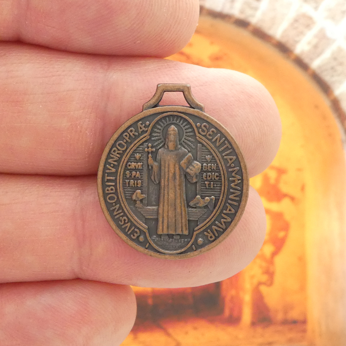 St Benedict Medal Pendant with Crucifix in Copper Pewter