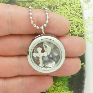 This Cross Pendant Necklace with Crystals on 30 Inch Bead Chain is the perfect way to add a touch of elegance to any outfit. Whether you're dressing up for a special occasion or just want to add a little bit of sparkle to your everyday look, this necklace is sure to do the trick. The crystals catch the light beautifully and create a stunning effect that is sure to turn heads. The best part about this necklace is that it can be worn with just about anything. Whether you pair it with a simple dress or dress it up with something more formal, it's sure to make a statement. Locket can be refilled with precious trinkets. A great piece for Religious events, Communion, Confirmation. Height 37-mm, Width 30-mm, Depth 13-mm. This Pewter Charm comes with 30" Ball chain.